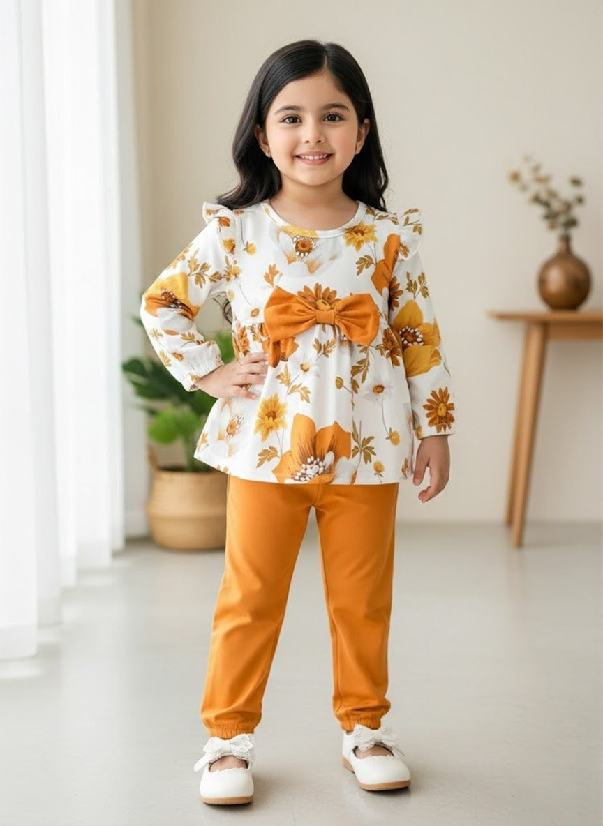 Apni little princess ke wardrobe ko banaiye aur bhi cute is Autumn Bloom Baby Girl Top & Pant Set ke saath. Yeh stylish floral printed outfit comfort aur fashion ka perfect combination hai, jo daily wear aur special occasions dono ke liye ideal hai.