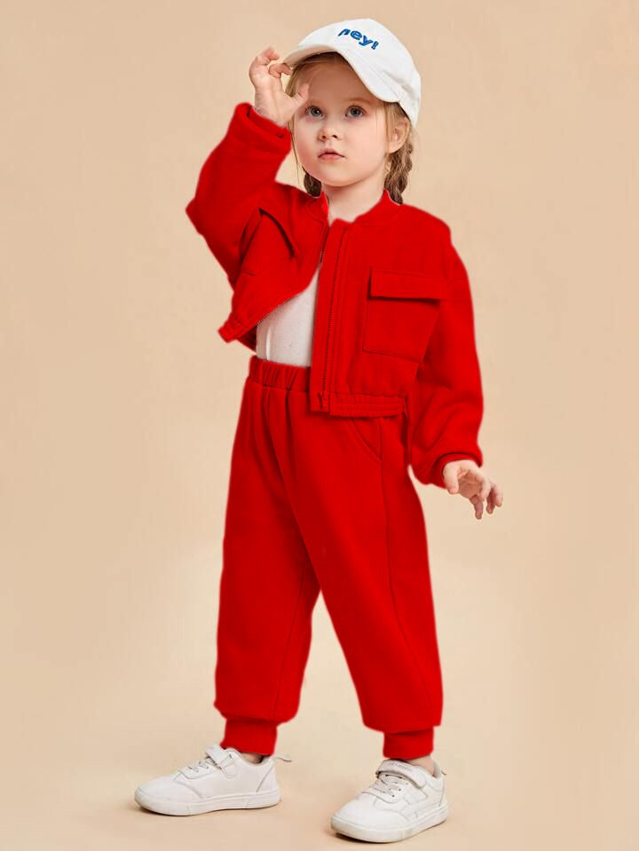 Baby girl red zipper style winter fleece tracksuit - #WS00-02
